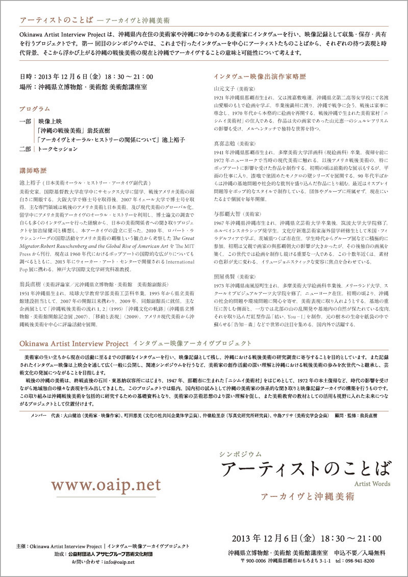インタヴュー映像出演作家略歴